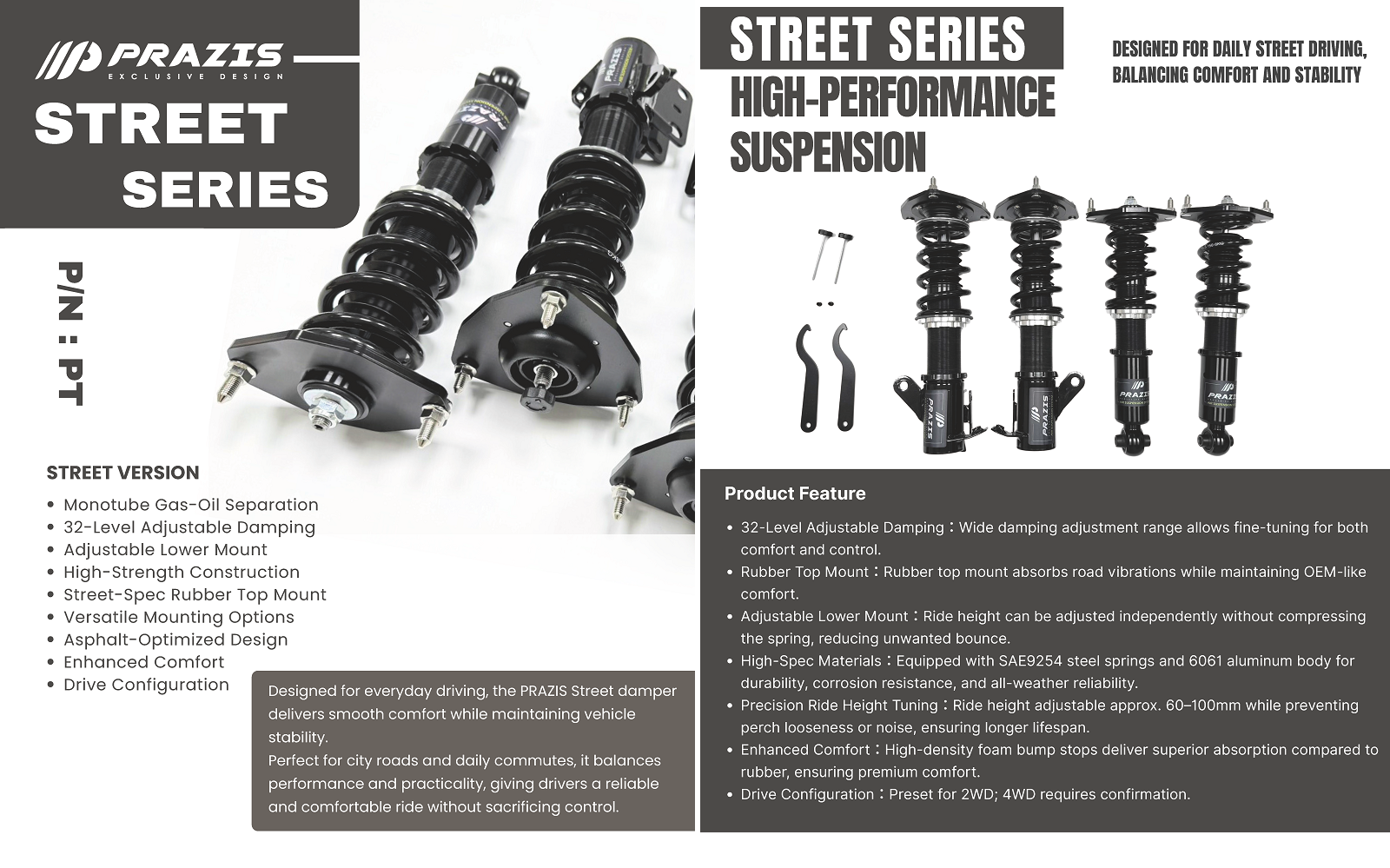 | ※ Street Version : Smooth and stable for daily city driving, prioritizing comfort and reliability. | ||||||||||||