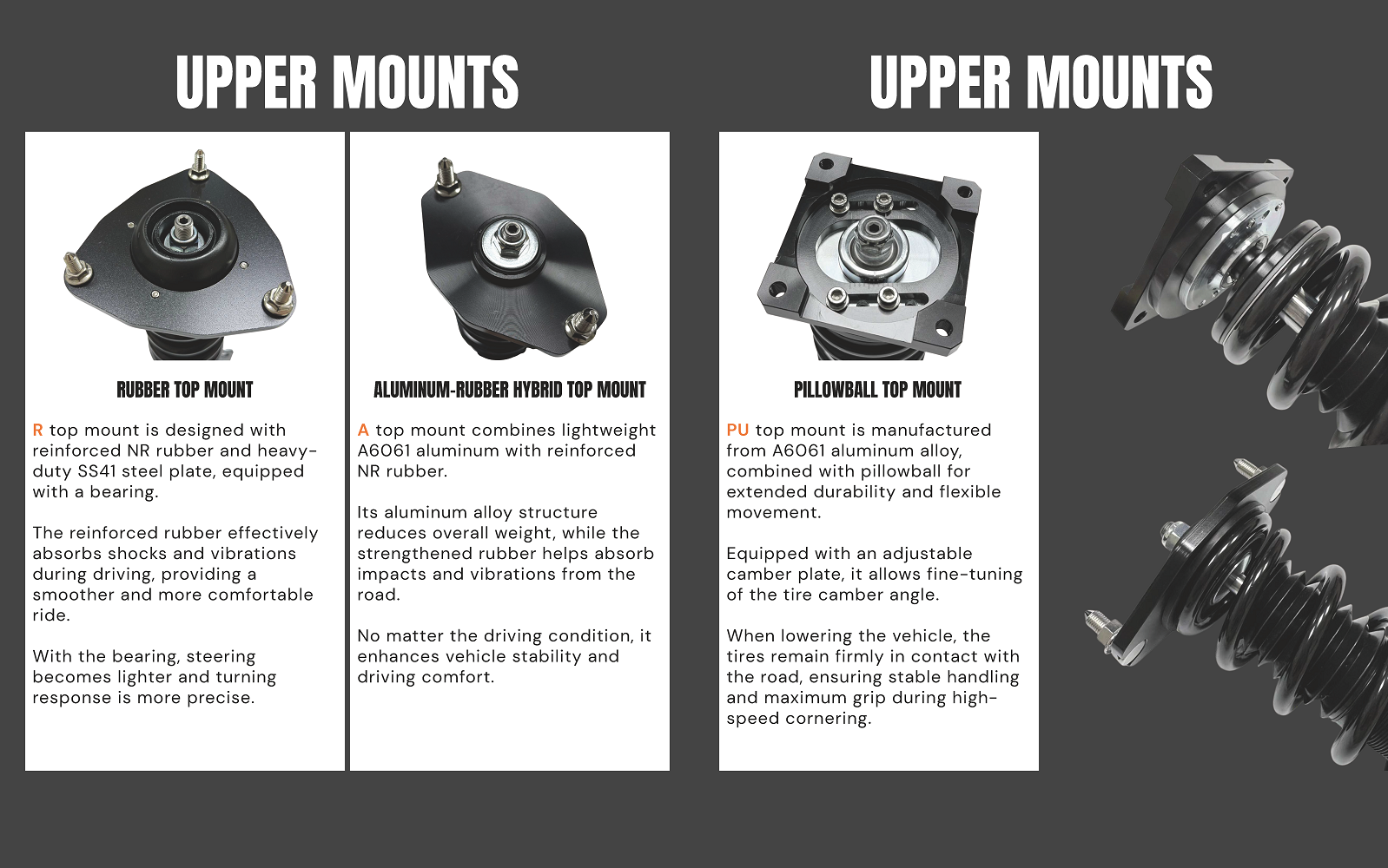 | 『 R 』 Rubber Top Mount | 『 N/A 』 Without top mount, and the OEM does not include one. | |||||||||||